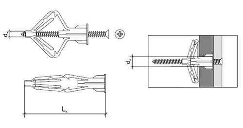 Упорные анкеры являются аналогами дюбелей Молли. Продукция ориентирована на тонкостенные опоры, имеет типовую конфигурацию: