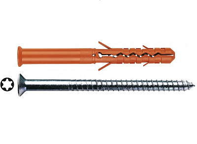Дюбель фиксирует метиз в посадочном отверстии. Он оснащен усиливающими элементами, увеличивающими надежность соединения: заостренные выступы, продольные распорки, боковые «усы». Большинство креплений имеют продольные прорези, способствующие равномерному расширению вставки при вкручивании шурупа.