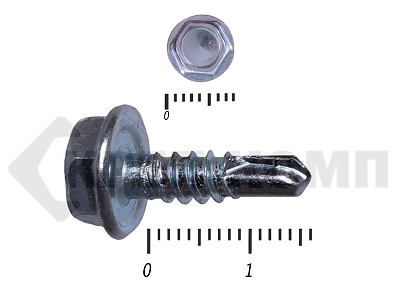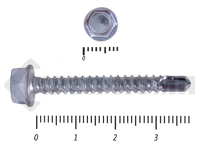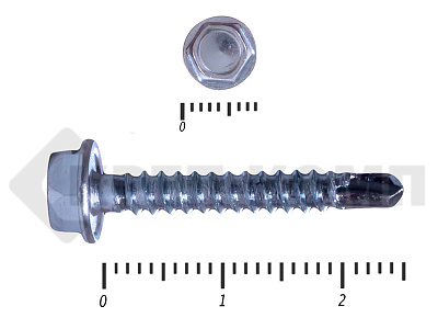 Все кровельные саморезы идут с шестигранными головками под насадки на 8 мм или 10 мм. Такая форма головки позволяет легко закручивать крепёж с помощью шуруповёрта. При этом исключаются перекосы и срыв шлицевых поверхностей шляпки.
