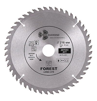 Пильные диски – это оснастка для дисковых и торцовочных пил или стационарных распиловочных станков. Они используются для выполнения продольных и поперечных распилов разных пород древесины, резания пластика и некоторых видов металлов. Угол атаки зубьев подбирается производителями индивидуально, чтобы обеспечить требуемую производительность и качество обработки. За счет высокой скорости вращения и благодаря наличию множества остро заточенных зубьев диски для пил обеспечивают формирование точных и ровных пропилов в обрабатываемом материале.